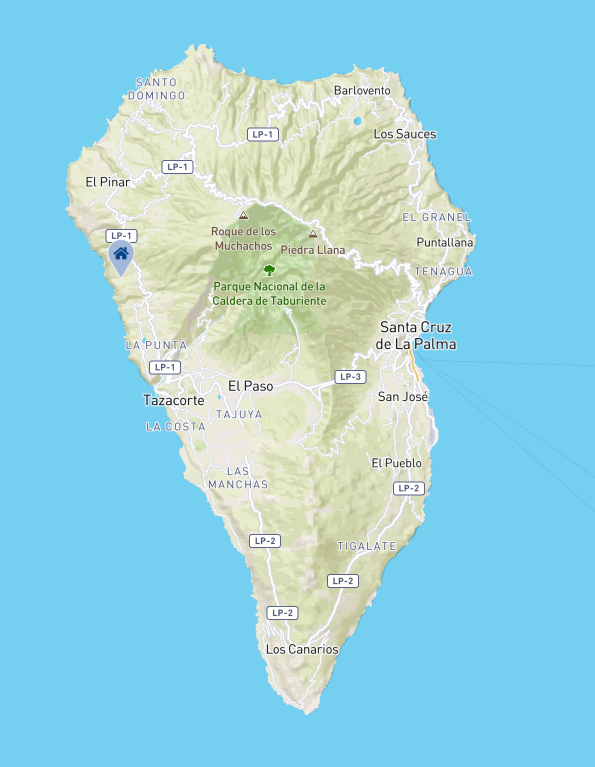 Das Haus liegt auf klimabegünstigten 460müM in Aguatavar, einem Ortsteil von Tijarafe, etwa 1,5km unterhalb der Straße nach Norden (LP1).