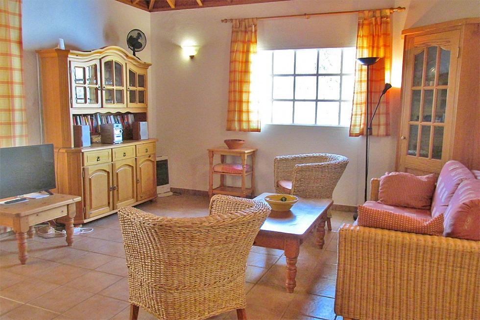 • Innenausstattung: 1 Schlafzimmer mit Doppelbett (1,60×2,00m), Wohnbereich mit komfortabler Sitzgarnitur, voll ausgestattete Küche (inkl. Backofen, Kaffeemaschine, Toaster, Mixer etc.), Esstisch mit 4 Stühlen, Badezimmer mit Dusche, Sat-TV, HiFi-Anlage, Klimaanlage/Splitgerät