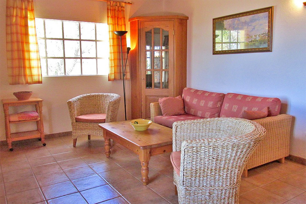 • Innenausstattung: 1 Schlafzimmer mit Doppelbett (1,60×2,00m), Wohnbereich mit komfortabler Sitzgarnitur, voll ausgestattete Küche (inkl. Backofen, Kaffeemaschine, Toaster, Mixer etc.), Esstisch mit 4 Stühlen, Badezimmer mit Dusche, Sat-TV, HiFi-Anlage, Klimaanlage/Splitgerät