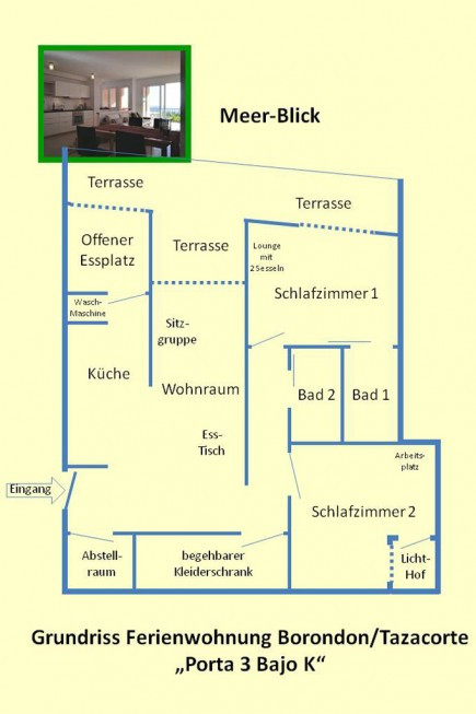 Ort: San Borondón – Villa de Tazacorte, Westseite La Palmas Höhenlage: ca. 95 m ü. M. Größe: ca. 90 m² Wohnfläche + über 20 m² Terrasse Kapazität: Bis 4 Personen + 1 Baby Lizenznummer: VV-38/5/0000127