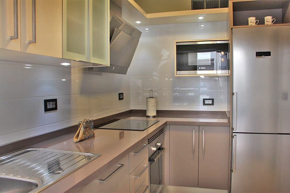 - Küche: Komplett ausgestattet mit Cerankochfeld, Backofen, Spülmaschine, Mikrowelle, Kaffeemaschine, Toaster, großer Kühl-Gefrierkombination sowie Balkon mit Waschmaschine.