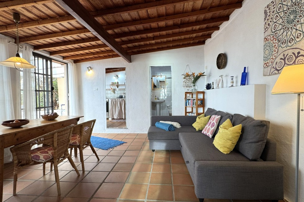 Dieses kleine, charmante Häuschen liegt wie ein Schatz auf einer weitläufigen Finca, eingebettet zwischen Palmen und Blumen, etwas unterhalb eines beheizbaren Salzwasserpools, der nur mit wenigen anderen Gästen geteilt wird. Hier spürt man vom ersten Moment an: Das ist ein Platz, an dem man ankommt. Und bleibt.