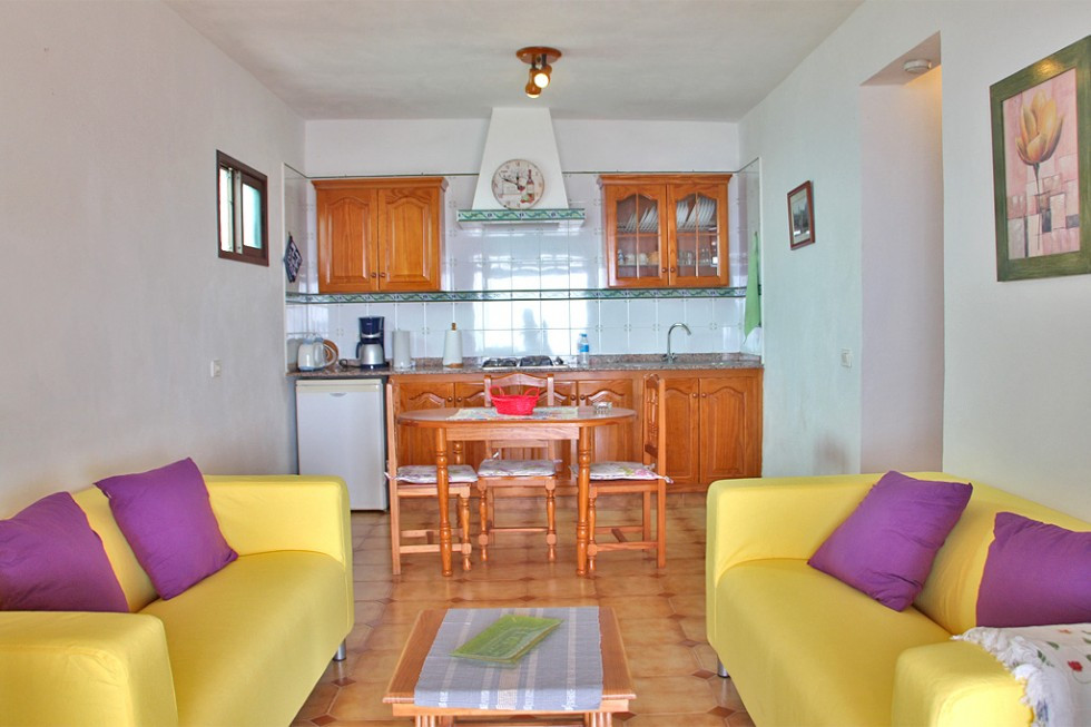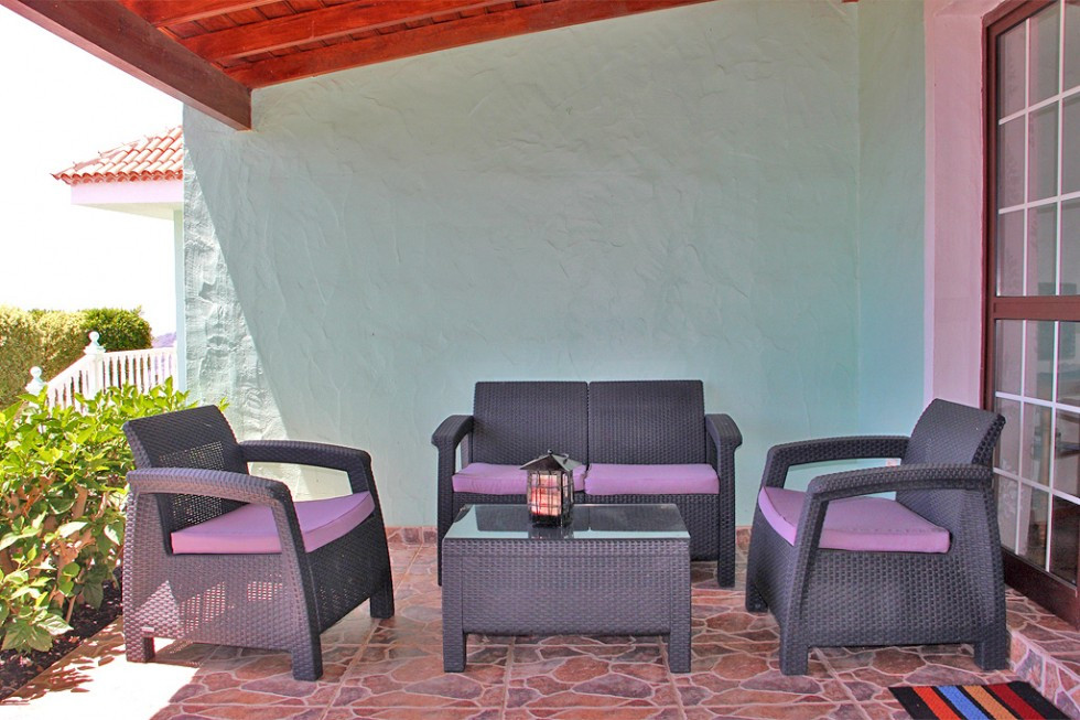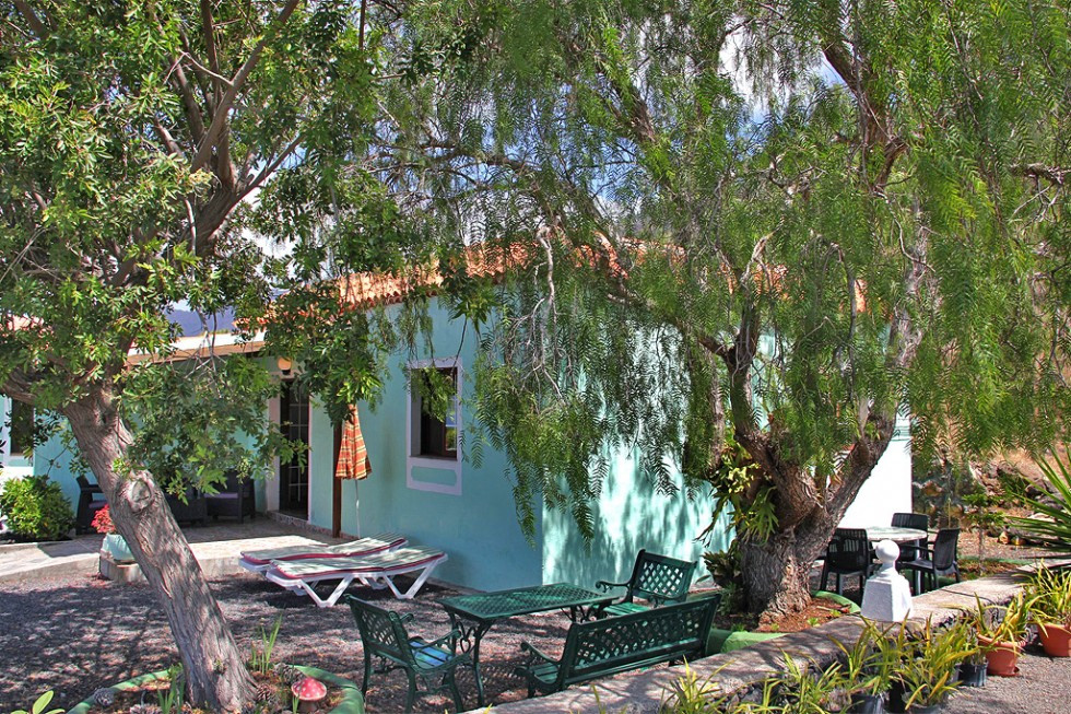 Casa A ist das rechte Haus auf dem Grundstück und bietet 70qm Wohnfläche sowie eine eigene überdachte Terrasse mit Loungemöbeln.