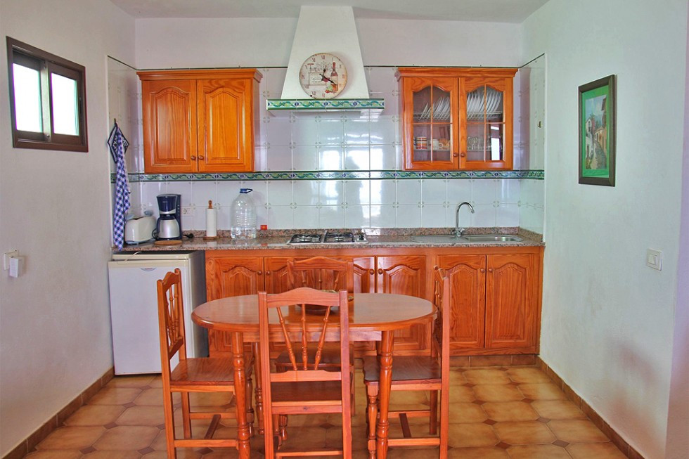 - Küchenzeile mit Gasherd (4 Flammen), Dunstabzug, Kaffeemaschine, Cafetera, Toaster, Kühlschrank mit Gefrierfach, Wasserkocher, elektrische Saftpresse