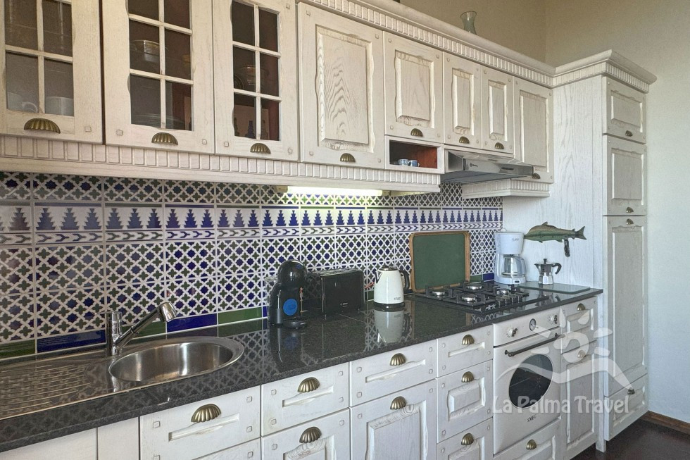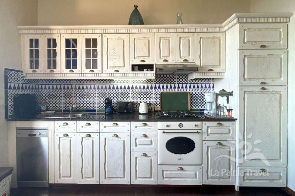 - Küche mit Gasherd, Backofen, Spülmaschine, Kühl-/Gefrierkombi, Kaffeemaschine, Cafetera, Toaster