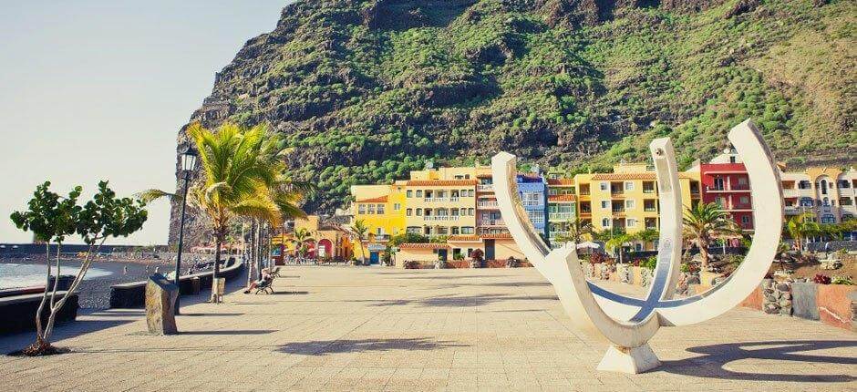 Die Strände von Tazacorte erlebten die erste Landung eines Schiffs von Eroberern Ende des 15. Jahrhunderts. Genau an dieser Stelle wurde auch die erste Kirche der Insel errichtet, zu Ehren des Erzengels Michael. Im Schatten der Pergola auf der Plaza de España kann man seine Gedanken schweifen lassen durch die abwechslungsreiche Geschichte der Insel, und gleichzeitig die schönen Mosaiken betrachten, die aus Sevilla hergebracht wurden, Nach einer wohlverdienten Pause kann man jetzt den Weg wiederaufnehmen und in Richtung der zerklüfteten Küste weiterwandern.
