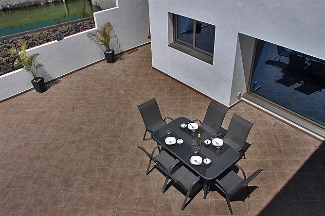 - Main terrace (west-facing) with dining table and 6 chairs