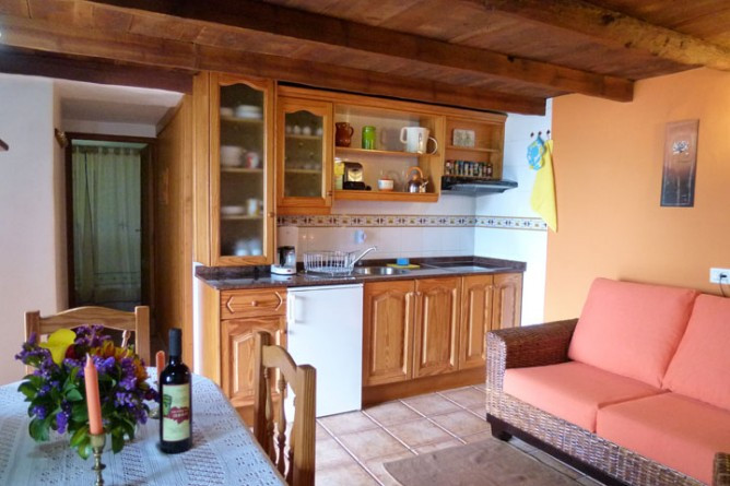 - The well-equipped kitchenette includes a ceramic hob, coffee machine, toaster, refrigerator with freezer, and essential cooking utensils — ideal for preparing meals with fresh local produce from the nearby Puntagorda farmers’ market.