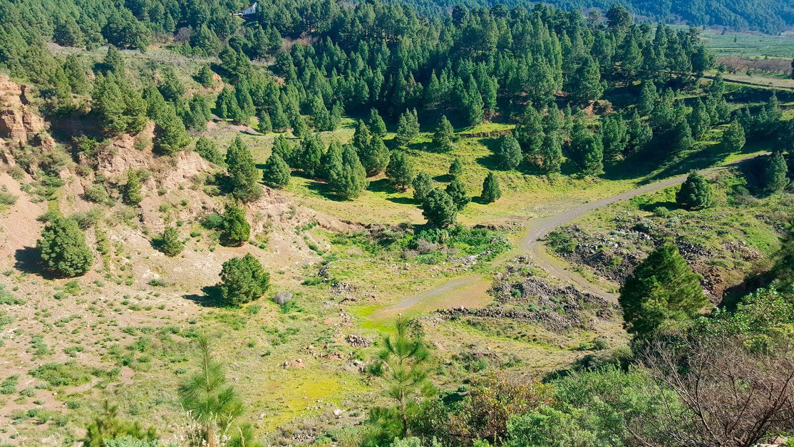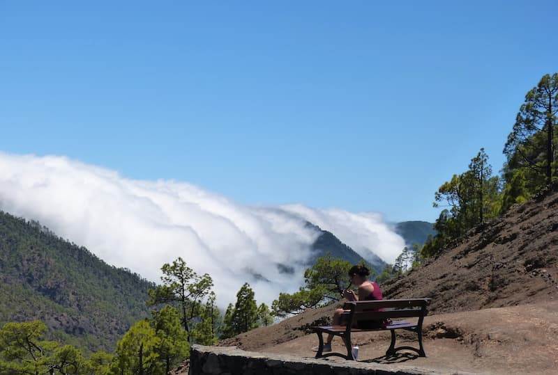 Our route runs through a lush pine forest adorned with rock roses and other typical Canary Island plants. This part of the trail is known as the “Gallery Path” because we pass by old water tunnels—remnants of La Palma’s long history of water management.